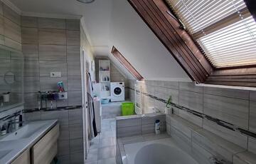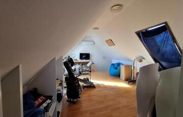 A tetőtér beépítésnek köszönhetően van egy plusz szobánk, ami szabadidős tevékenységre és lakószobának egyaránt igénybe vehető.