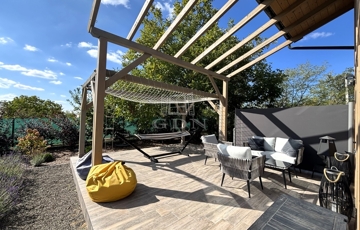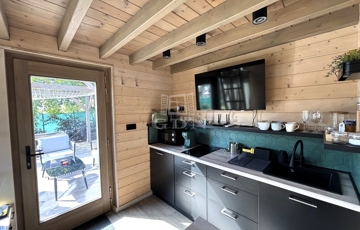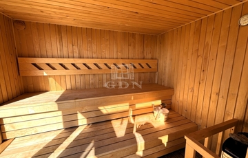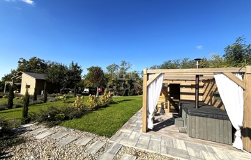 - KÜLÖNÁLLÓ WELLNESS ÉPÜLET szaunával, dézsával, kinti zuhanyzóval, FEDDETT PIHENŐRÉSSZEL és hangulatos esti világítással.