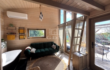Eladó Monor csendes részén, 2136 m²-es nyugodt, gyönyörűen PARKOSÍTOTT telken ahol a belső béke és a természet harmóniája találkozik, egy 28 m²-es galériás modern faház SZIGETELÉSSEL és thermo üvegezéssel.