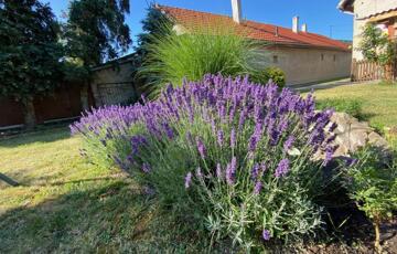 A 500 nm-es, parkosított telek gondozott kerttel, fúrt kúttal és épített kis medencével rendelkezik, így igazán kellemes, nyugodt környezetet biztosít az ott élők számára.