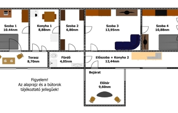 A családi ház hasznos alapterülete 67,44nm, melyben található:
