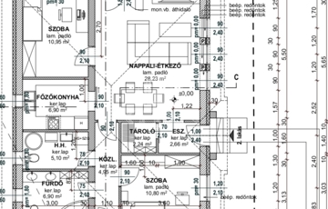 - teraszkapcsolatos nappali/konyha/étkező (28.23 + 6.90 = 35.13 m2)