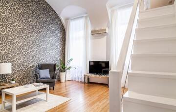 A gyönyörűen felújított és berendezett galériás lakás a VII. kerület LEGIMPOZÁNSABB részén, a GOZSDU UDVARTÓL karnyújtásnyira található.