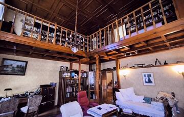 A ház 250 négyzetméteres, négy tágas szobája, társalgója, galériája különleges hangulatot nyújt.