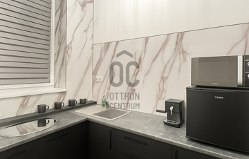- Prémium minőségű, gépesített konyha (mikró, hűtő, kávégép stb.)