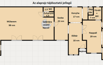 Az ingatlan remek választás olyan embernek, akinek szüksége van alkotói térre vagy a munkája miatt hasznosítani tudja a közel 120 nm nagyságú művészi részét a háznak, de akár befektetési célra is kiváló választás. A ház lakrésze 140 nm hasznos alapterületű, itt akár 4 szoba, 1 nappali, 1 előtér + étkező, 1 konyha és 1 fürdő+ WC található, jelenleg ez is egyedi stílusba van berendezve, de az elosztása adott, abból könnyedén kialakítható egy nagyobb család számára praktikus lakrész.