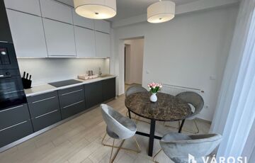 A lakás elrendezése modern és praktikus: 3 tágas, világos szoba, egy elegáns nappali, 2 fürdőszoba és egy amerikai stílusú konyha található benne, mely teljesen felszerelt és berendezett. A kényelmet padlófűtés, klíma és dekorvilágítás teszi teljessé.