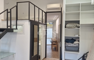 A 33 m²-es garzon galériázott kialakítású, erkéllyel és gépesített konyhával, míg a 58 m²-es lakás két szobával és két fürdőszobával rendelkezik. Mindkét lakás világos, déli fekvésű, klimatizált, a fűtést közös, de szabályozható gázcirkó biztosítja.