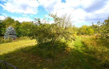 A telek hátsó részében körbekerített tyúkól és veteményes található, illetve sok gyümölcsfa, míg a telek végét egy keskeny akácos fasor határolja.