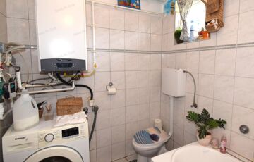 A lakóházba egy fedett, kb 8 m2-es teraszon keresztül léphetünk be. Az alapterület bruttó 71 (nettó: 60 m2). Tetőtér bruttó: 51 (hasznos: kb 20 m2)