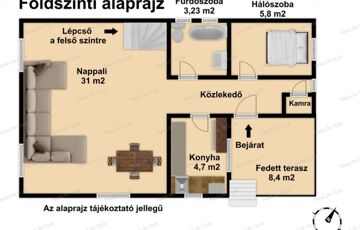A jelen hirdetésben rögzített, az ingatlannal kapcsolatos adatok, információk, Megbízó tájékoztatása alapján kerültek meghatározásra.