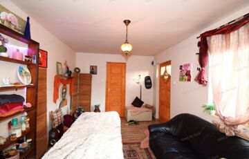 Elosztása a jelenlegi formában: tágas nappali étkezővel, konyha, hálószoba, fürdőszoba káddal toalettel és egy kis kamra. A nappaliból tudunk egy fából készült íves lépcsőn felmenni a tetőtérbe, ahol két szoba és egy gardrób helyiség került kialakításra.