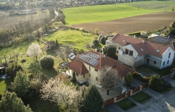 Nagykozár központjától nem messze, egy forgalomtól elzárt, nyugodt zsákutcában kínálunk megvételre egy kiváló állapotú, kétszintes családi házat, amely egy 1319 m²-es telken helyezkedik el. Az ingatlan összesen 5 szobával rendelkezik, igényes kivitelezésű, esztétikailag és műszakilag is újszerű.A telek lakóövezeti besorolású, karbantartott, parkosított, és különlegessége, hogy tartozik hozzá egy 1124 m²-es, termő gyümölcsfákkal beültetett terület is, melyen egy külön gazdasági épület található. A kertben egy 39 méter mély, kiváló minőségű fúrt kút is rendelkezésre áll, mely alkalmas öntözésre vagy akár medence feltöltésére is.Az otthon 38 cm vastag Porotherm téglából épült, melyet 10 cm-es homlokzati szigetelés borít. A lakótér kialakítása modern és praktikus: négy külön nyíló hálószoba, tágas amerikai konyhás nappali, két fürdőszoba, egy külön WC és tároló helyiségek is megtalálhatók benne. A nappalihoz közvetlen kapcsolódik egy 35 m²-es terasz, ami tovább bővíti a lakóteret és ideális szabadtéri pihenésre.A fűtésről jelenleg egy esztétikus, téglából épített cserépkályha gondoskodik, de az egész házban kiépítették a központi fűtés csőhálózatát, így akár gázkazán is könnyen beüzemelhető. Az ingatlan egy 5 kW-os napelemrendszerrel is rendelkezik, háromfázisú villamos hálózattal.Autók számára garázs és udvari beálló is biztosított, összesen akár 4 jármű kényelmes elhelyezésére van lehetőség.