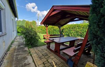 A Zalai-dombság gyönyörű vidékén, távol a nagyvárosok zajától és nyüzsgésétől, található Bázakerettye, ez a bájos, erdőkkel körülölelt település. Itt, egy csendes utcában, gondosan karbantartott 740 m²-es saroktelken várja új tulajdonosát ez a mesebeli kis családi ház, amely fedett autóbeállóval, fa pavilonnal és grillezővel is rendelkezik.