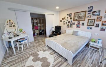 A modern fa nyílászárók hő- és hangszigeteltek, redőnnyel és szúnyoghálóval felszereltek. A padlóburkolatok járólap, laminált padló és parketta kombinációjából állnak.