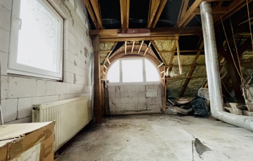 • Tetőtér: a beépítés megkezdődött, a tervek elkészültek, a korszerű hőszigetelt műanyag nyílászárók beépítésre kerültek. A felső szintről gyönyörű kilátás nyílik a környékre – ideális hely új lakrész vagy tágas, világos élettér kialakítására.
