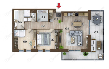 Eladó 3 szobás lakás a Komárnoi lakóparkban, az A blokk 3. szintjén, teljes alapterület: 111,09 m². Helyszín Komárno, a Bástya VII. nemzeti kulturális emlékmű közelében.