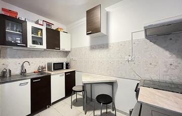 A konyha új bútorzatot és burkolatot kapott, tágas a falak eltávolítása miatt.