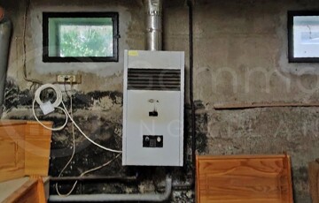 A fűtésről egy vegyestüzelésű kazán és egy gázcirkó is gondoskodik, radiátor hőleadókkal. A gépészet, 40m2-es pincrészben kapott helyet, amely házból is közvetlenül megközelíthető.