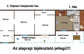 A második ingatlan az 1950.-s években épült vegyes falazattal. Teljes egészében felújítandó 67,1 nm plusz 15,6 nm.-fedett terasz. Ide csak a villany van jelenleg bevezetve.