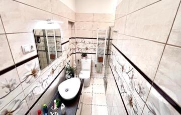 A fürdőszoba modern stílusban került kialakításra, a lakásban KÉT WC található, az egyik a fürdőszobában, a másik külön bejárattal.
