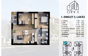 Az 50-84 m2 közötti, modern lakásokból álló lakópark minden lakása terasszal lett tervezve.
