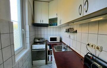Jó állapotú, két szobás lakás, amelynek részei egy előszoba, hálószoba, étkezős nappali, amiből leválasztásra került egy gardrób, továbbá konyha, fürdőszoba és mosdó. A fűtést Mika kazán biztosítja lapradiátorokkal, a melegvizet jó állapotban lévő villanybojler. A konyhában lévő műanyag, hőszigetelt ablak, valamint a többi egységben lévő fakeretes, gerébtokos ablakok zárják ki a hang- és hőhatásokat. 2025-ben az ajtókat újrafestették és ki lettek cserélve a melegburkolatok és a fűtéscsövek. 7 éve cserélték a fürdőszoba burkolatát, 3 éve a fürdőkádat. A lakáshoz tartozik egy-egy tároló a pincében és a padlástérben, valamint egy zárt garázs/tároló a körbekerített udvaron