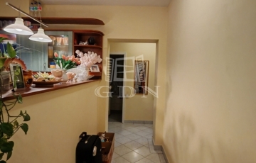 Itt egy tágas konyha -étkező vár. Ebből nyílik balra a kamra, jobbra a nappali szoba, ahonnan kijuthatunk az erkélyre.
