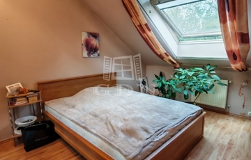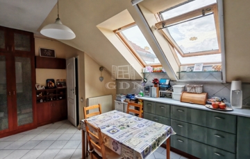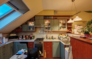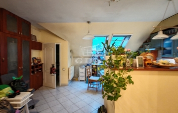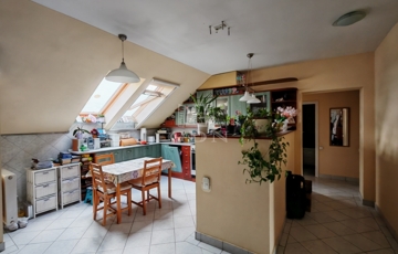 A zárt lépcsőházból juthatunk el a kínált tetőtéri lakásba.