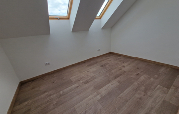 Az emeleten fürdő és külön WC, egy nappali valamint 2 hálószoba és egy erkély kerül kialakításra. A tetőtérben 58,22 m2 az 1,9 m feletti belmagasságú terület.