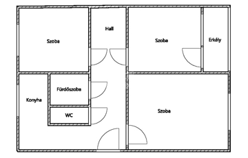 Elrendezés: 1+2 különnyíló szoba, konyha, fürdőszoba, külön WC, közlekedő, erkély