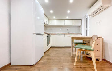 A bútorok a vételár részét képezik, beleértve a gépesített konyhaszekrényt (hűtőszekrény, szag- és páraelszívó, mosogatógép, főzőlap, sütő).