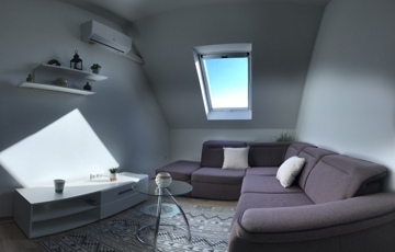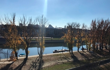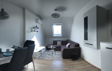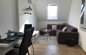 Győr-Révfalu rendkívül kedvelt, klasszikus részén, Belvárostól, Egyetemtől pár perces sétatávolságra, a Dózsa György rakparton, csendes, rendezett társasház ötödik emeletén, teljes felújításon átesett (nyílászáró-, víz-, villanyvezeték csere, fűtéskorszerűsítés, burkolatcsere, új konyhabútor, szaniterek cseréje, festés, stb.) 2 hálószoba + konyha – étkezős, kiváló állapotú 58 m2-es, bútorozott és részben gépesített KLIMATIZÁLT téglalakás kiadó.