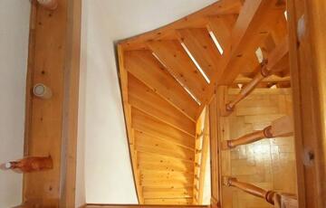 A ház falazata kő és tégla. Az alsó szinten különálló grázs(15m2-gázkazán,mosókamra) nappali(25m2), étkező(20m2 +feljáró az emeletre), konyha(7m2), fürdő-wc(3m2).A felső szinten hálószoba1(16m2), hálószoba2(16m2), hálószoba3(10m2), hálószoba4(10m2), nappali(13m2), fürdőszoba-wc(9m2) és egy erkély(12m2)található.