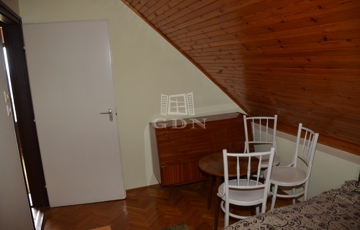Emelet: 1 nagy és 2 kisebb szoba lambériázott mennyezettel, az egyik szobából fürdő kialakítható.