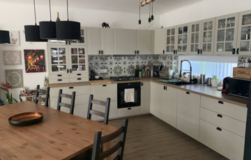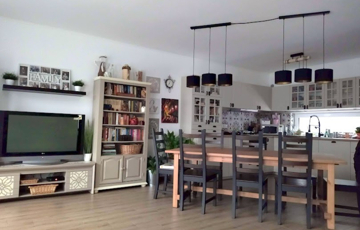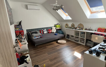 119 m²-es lakótér: 4 hálószoba, amerikai konyhás nappali, beépített és gépesített konyhával, galéria, kamra.