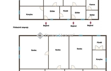 Felső szint: 4 szoba, konyha, fürdő, kamra, étkező, közlekedő