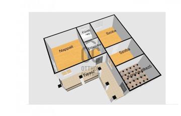 Az utcáról az udvaron át megközelíthető házba, a fedett teraszról léphetünk, az előtérbe, melyből a nappali egy szoba és a fürdőszoba érhető el. A szobába belépve pedig a harmadik szobát érjük el.