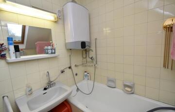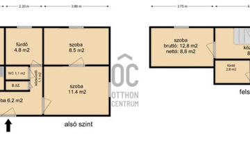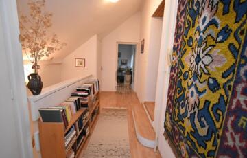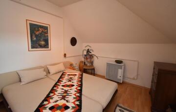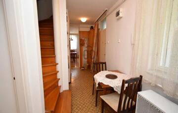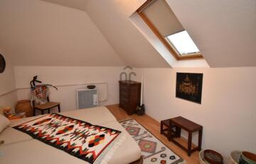 - az emeletre egy hangulatos fával burkolt lépcsőn jutunk fel, itt egy kis előtér, két szoba, zuhanyzó, WC kapott helyet