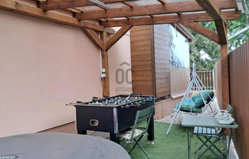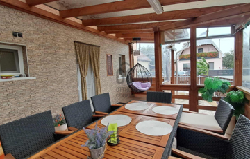 A kétszintes épület kialakítása praktikus és sokoldalú: három különnyíló félszoba és két tágas nappali biztosítja a kényelmet akár nagyobb család, akár vendégek számára. Az ingatlan különlegessége a hatalmas, téliesíthető terasz, amely ideális helyszíne baráti összejöveteleknek, családi vacsoráknak vagy egyszerűen a nyugodt pihenésnek. A parkosított, gondozott udvarban fűthető jacuzzi, szalonnasütő és bográcsozóhely is helyet kapott, így a kikapcsolódás télen-nyáron garantált.