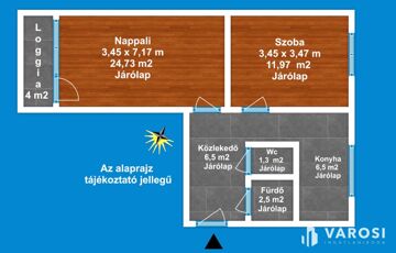 A lakás 1 db hallos nappalival, 1 db hálószobával, 1 db fürdőszobával, külön Wc-vel, közlekedővel, erkéllyel rendelkezik. Az ingatlan elhelyezkedésre, kialakítása miatt rendkívül sokrétű a felhasználása - akár lakás, vagy befektetési célra -, amely maximálisan kiemeli ezt az ingatlant az átlagos lakások sorából és egyedülálló választássá teszi azt.