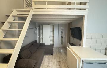 Budapest VI. kerületében, a Király utca 97.-ben kiadó egy 20 m²-es, galériás, 1 szobás garzonlakás. A lakás bútorozott, részben gépesített, a fürdőszoba zuhanyzós. Az ingatlan a 2. emeleten található, lift nincs a házban.