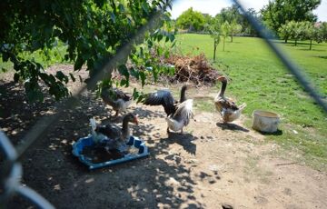 A kertben fiatal gyümölcsfák vannak, a kert az elmúlt 10 évben nem volt permetezve, így biogazdálkodásra tökéletes! A nagy diófa alatt lett kialakítva a baromfiudvar, ahol nemcsak tyúkok és kakas van, de libákat is találunk (állatbarát vevők a házzal együtt ezeket is megkaphatják!). A házhoz tartozik pár melléképület, műhely, gépkocsibeálló, és egy pince.