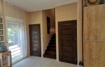 A mediterrán stílusú hátsó terasz igazi ékköve az ingatlannak: egy kis patak csordogál a kert végében, egy magasabb kert részben a medence, a grillezőhelyiség és a panorámás kilátás a Mecsekre pedig a nyugalom és a kikapcsolódás zálogai.
