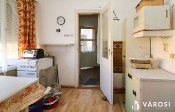 Békésen, a Csabai út közelében, csendes és aszfaltozott mellékutcában eladó egy felújítandó, téglaépítésű „Kádár kocka” típusú családi ház.