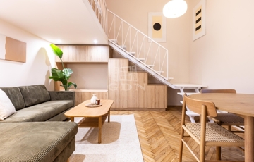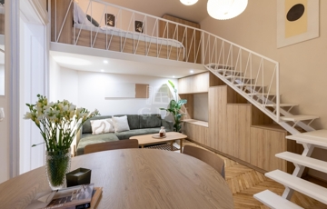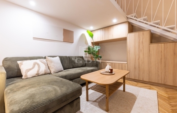 A lakás vadonatúj állapotú – a vezetékektől a burkolatokig mindent kicseréltek, modern konyhával és elegáns fürdőszobával látták el. A galériás kialakításnak köszönhetően tágasabb érzetet kelt, a felső szinten kényelmes hálórész kapott helyet. Az enteriőr letisztult, mégis karakteres, a belső tér harmóniáját a gondosan megválasztott színek és anyagok biztosítják.