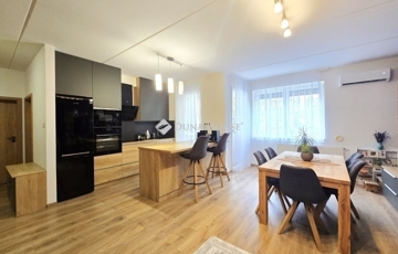 Pécs kertvárosi részén a Fellbach lakóparkban eladó egy magasföldszinti, 2021-ben felújított, tágas amerikai konyha-nappali+1 szoba elosztású, klímás, egyedi mérős, tégla lakás, saját tárolóval.A társasház újszerű, kamera rendszerrel védett és lifttel felszerelt. Parkolás a lépcsőház bejáratánál lehetséges(mindig van hely!), igény szerint a ház alatti teremgarázsban beálló is bérelhető!A lakáson 2021-ben a következő felújításokat végezték el:- új burkolatok- friss festés- fürdő és wc felújítása, új szaniterekkel, épített zuhannyal- új gépesített konyhabútor-szigettel- új beltéri ajtók- új dugaljak és kapcsolók- új klíma (2024-ben)A klíma, a konyhabútor beépített gépekkel és a beépített szekrények (fürdőszoba+2 db gardrób szekrény) a vételár részét képezik!I.ár: 61,9M Ft