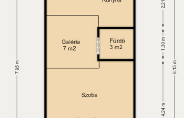 A 37 m2-es alapterület a nagy belmagasság miatt sokkal tágasabb hatást kelt.