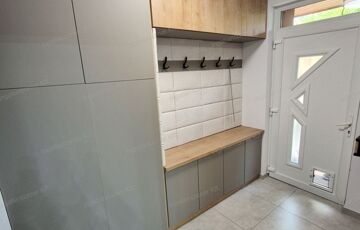•TÁGAS ELŐSZOBA (4,97m2) fogadja az érkezőket, ahol, egy sok mindent elnyelő faltól falig beépített szekrény került kialakításra, tovább lépe egy közlekedő folyosóról.