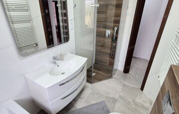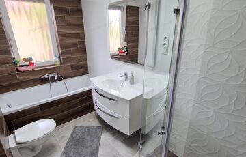 •FÜRDŐSZOBA (5,96m2) melyben plusz egy wc, új épített zuhany, kád és egy nagyméretű mosdó szekrénnyel érhető el.